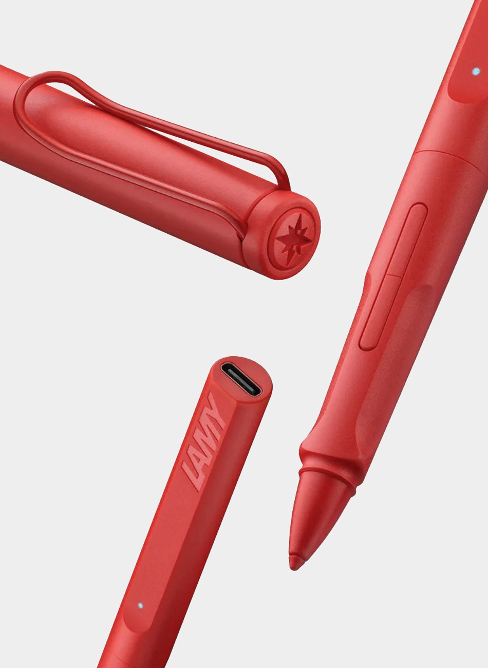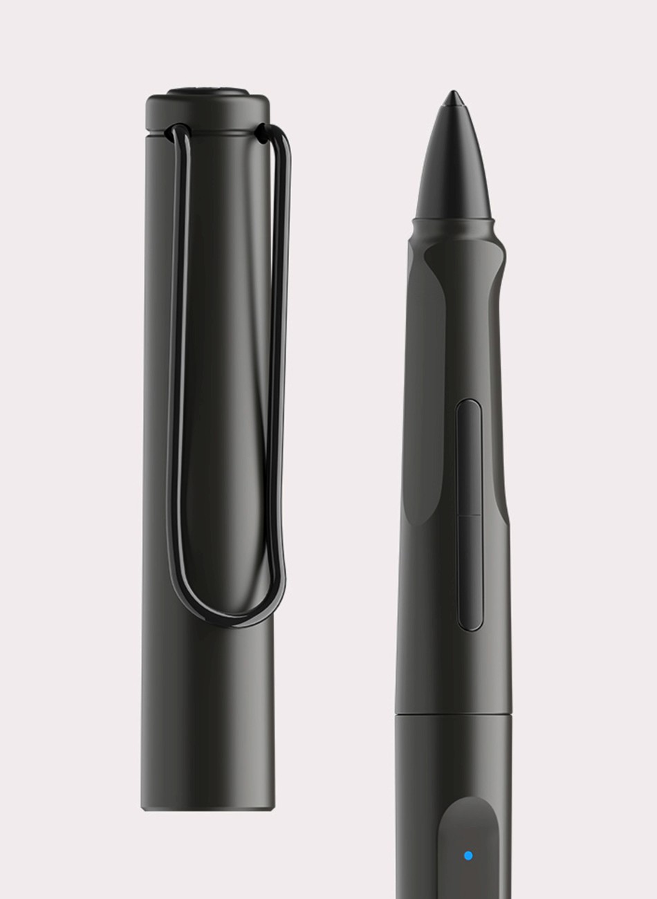 We are proud to have guided the industrial design and creative identity of the note+ pen for LAMY. The goal was to develop a digital pen that clearly embodies the essence of a pen, blending the iconic ergonomic language of LAMY’s Safari with the precision of modern technology for Apple iPads. As designers, we understand the value of drawing in capturing ideas. The note+ reflects the natural motion of the hand, whether writing or sketching, bridging analogue and digital worlds, with a focus on making the writing experience intuitive, especially in educational settings. The design process involved carefully balancing functional details, textures, and colours to align with LAMY’s well-known Safari heritage.