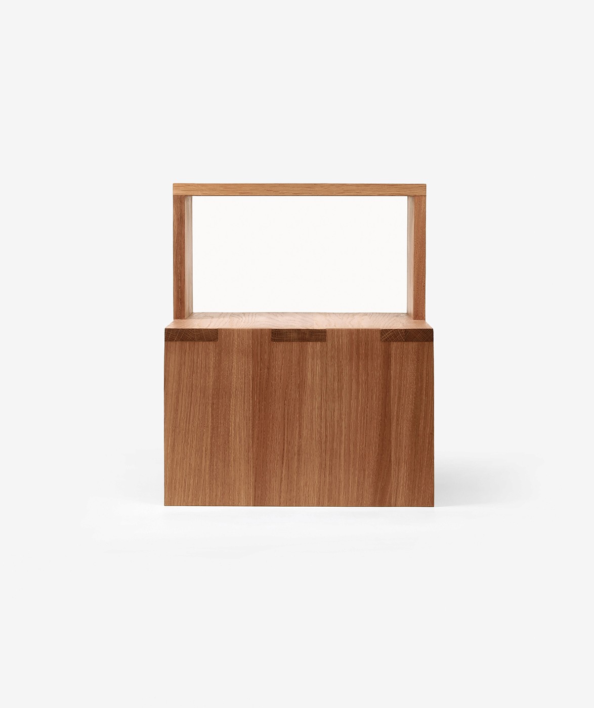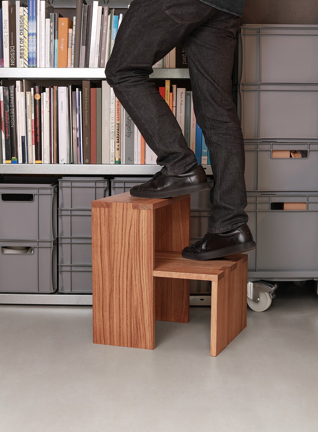 Step is conceived as an architectural object that resists clear categorisation. It functions as a side table, bedside piece, or small step ladder, adapting to different situations within the home. The design follows a strict, orthogonal composition. Two offset levels create a subtle spatial rhythm while enabling intuitive use. Its compact, balanced proportions allow it to integrate seamlessly into interiors. Crafted from solid oak, Step features a refined dovetail construction. The number of joints is deliberately reduced to the minimum required, expressed with precision to reinforce structural clarity. With its restrained language and multifunctional character, Step reflects a pragmatic approach to contemporary living.